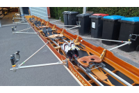 RV Breda is offering a sculling B-four -/+ from 1994 for sale. This B-four is in good condition, well maintained, and perfectly rigged. Hardly any paint damage. The boat can also be rowed without a coxswain, steered from the bow seat. In that setup, it feels like a coxed straight four. Ideal as a training boat for coxed racing events. All oarlocks are set at 4 degrees, and the shoes are in good condition. All frames are solid and strong. Stainless steel Verschoor riggers, fully adjustable. We have many more photos available. Asking price is 1500 euros. For inquiries, please contact: Materiaal@RVBreda.nl