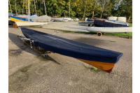 Zu verkaufen: Schönes Busman-Einmannboot. In sehr gutem Zustand. Mit Carbon-Rudern, Bootshaken, Paddel und Sitzkissen, Persenning und das Boot steht auf einem hölzernen Bootswagen.