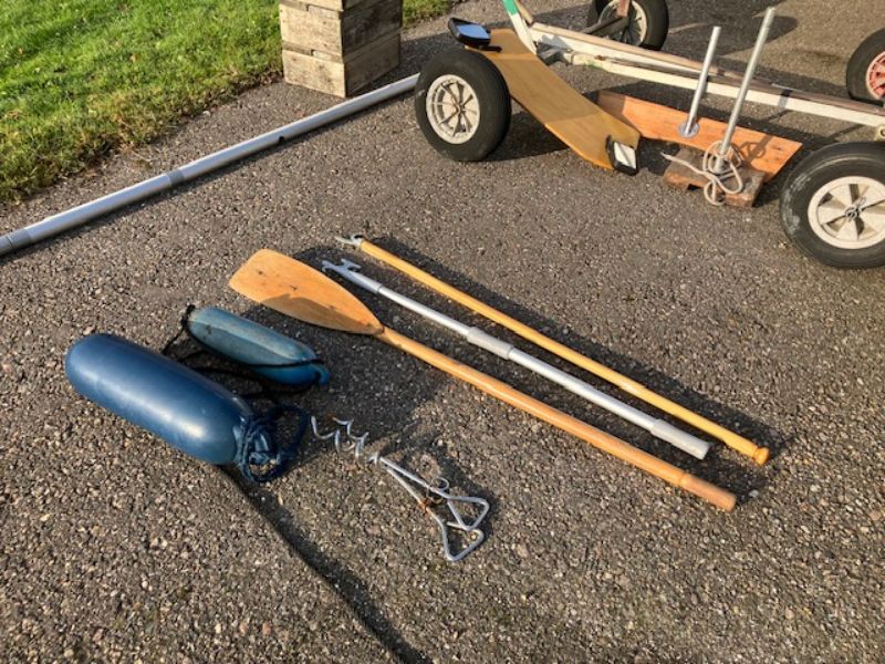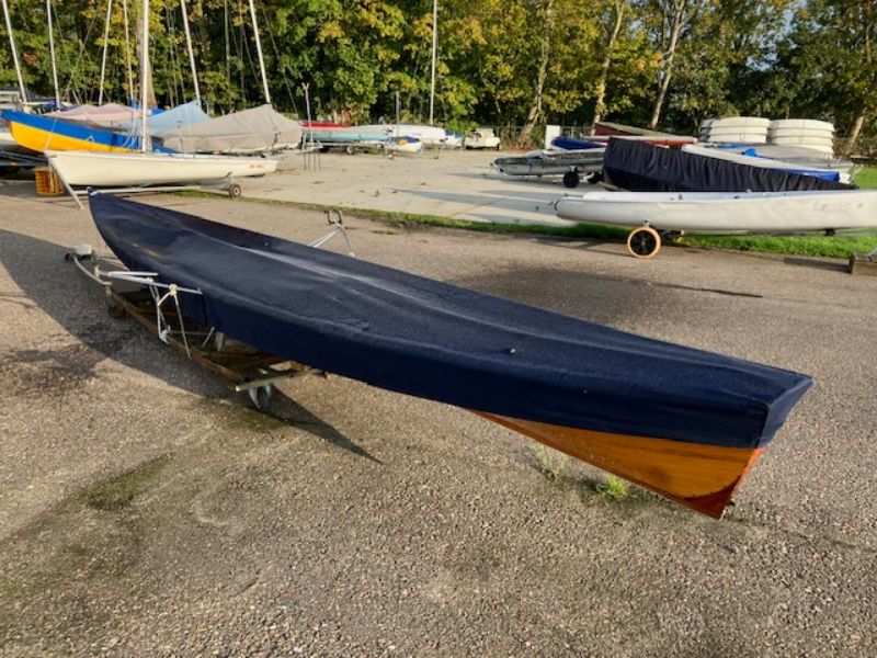 For sale: Beautiful single Busman wherry. In very good condition. With carbon oars, boat hook, paddle and seat cushion, cover and the boat is on a wooden boat trolley.