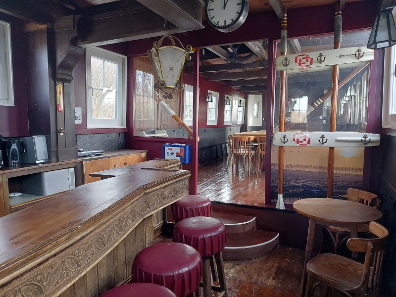 Technische staat: Houten opbouw, kunststof kozijnen, stalen onderwaterschip, afgevuld met beton voor stabiliteit Onderwaterschip in 2023 gekeurd voor de verzekering, waar nodig voorzien van nieuw plaatwerk en volledig geconserveerd Kortom: een zo goed als instapklare, sfeervolle en representatieve barboot die direct inzetbaar is als club- of verenigingsschip. Een unieke kans voor een vereniging die op zoek is naar een drijvende betaalbare ontmoetingsplek met karakter en nautische sfeer.