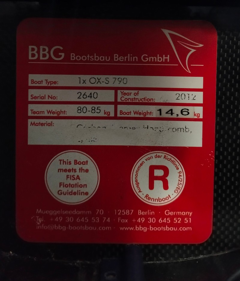 1X- BGG complete boat in very good condition. Comes with an additional outrigger + NK speedcoach.